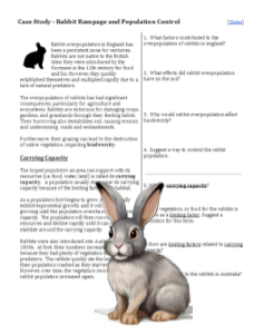 The case begins with the historic introduction of rabbits to England in the 12th century. Originally, humans imported rabbits for hunting as as a food source. The rabbit populations quickly grew out of control, damaging the ecosystem. For instance, native herbivores, like deer were impacted. Rabbits even caused erosion damage to soil, further limiting biodiversity.