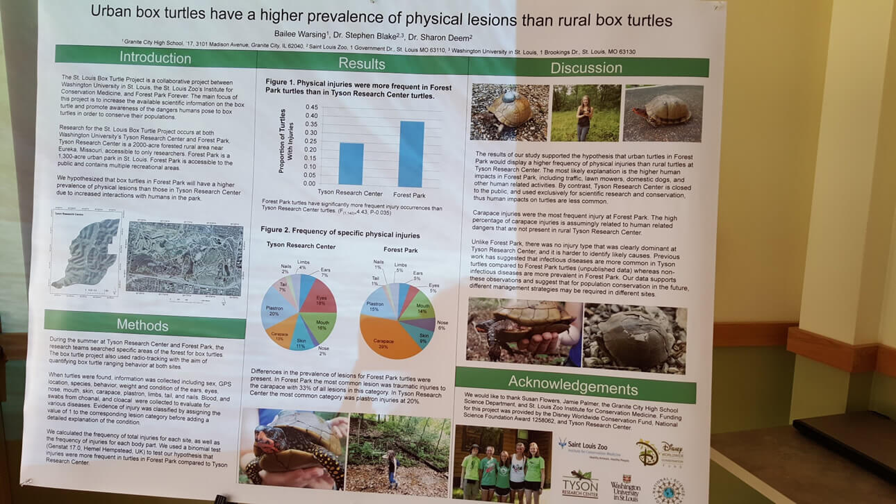 The SIFT program (Shaw Institute for Field Training) is a one-week summer field training experience open to area high school students. One of my students, Bailee Warsing, entered this program at the end of her sophomore year. She continued this experience the following year by joining TERF (Tyson Environmental Research Fellows) where she worked on a project that gathered data on turtles in the area. This was real field biology, where seasoned researchers mentor high school students and undergraduates. Students conduct ecological research and explore career paths in environmental disciplines.