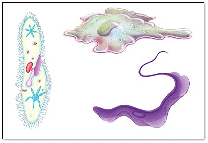 Ex: Euglena, Amoeba, Paramecium, Algae, Slime Molds