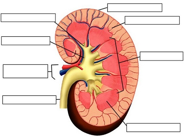 3. Describe and label a kidney (renal pelvis and sinus, cortex, medulla, nephron, renal pyramid, hilum)