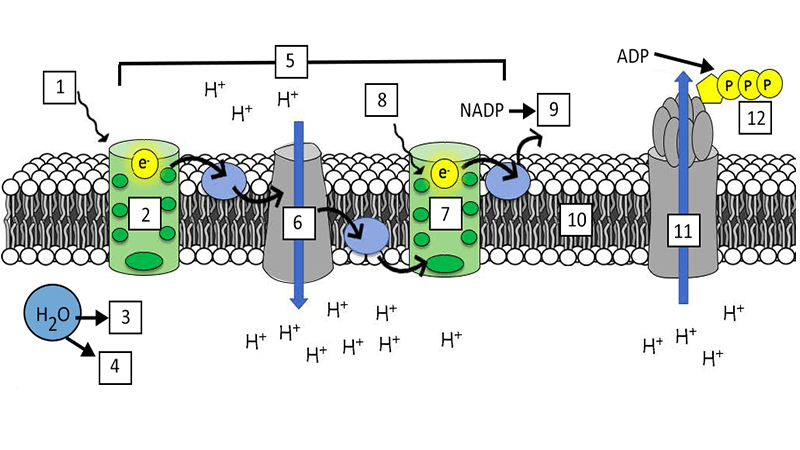 Students label a graphic showing an overview of photosynthesis and the Calvin cycle, plus a detailed image of photosystem I and II.