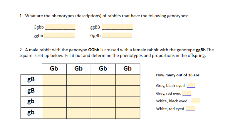 Students practice genetics of multiple allele traits as they study coat colors in rabbits: black, chinchilla, Himalayan, white.