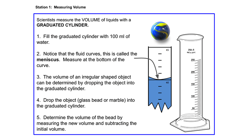 Learn to use scientific tools in this station activity. Determine volume, length, temperature, and mass by visiting stations in the lab and performing tasks.