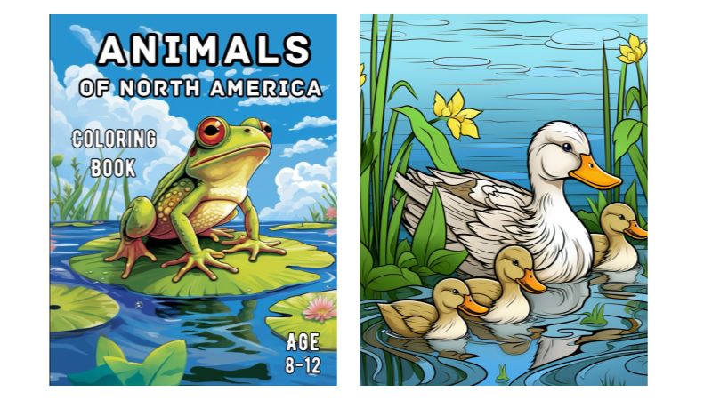 A coloring book showcasing the animals of North America. Shows a variety of animals in their natural habitats!