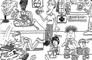 This cartoon depicts students engaging in safe and unsafe activities. It is a good starting point for a discussion on lab safety.