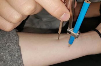 Students investigate the sensitivity of different areas of the skin using a mathematical compass to stimulate mechanoreceptors. The procedure asks students to place the points of the compass on different areas, such as the forearm and the palm and have a test subject report whether one point is being felt or two points. The compass…