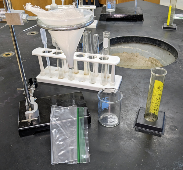 In this procedure, you will crush a strawberry and add detergent and salt to break down the cell walls to release the DNA within the nucleus. You will then filter the liquid from this crushed strawberry into a beaker, the substance is called the filtrate.