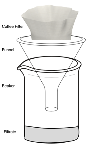 3. Place a funnel in a beaker and a coffee filter in the funnel.