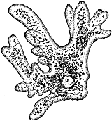 Protists are also classified by how they move, some have cilia or flagella, but the ameba has an unusual way of creeping along by stretching its cytoplasm into fingerlike extensions called pseudopodia. The word "pseudopodia" means "false foot". On the coloring sheet, there are several pseudopodia, use a yellow highlighter or pencil to highlight each of them