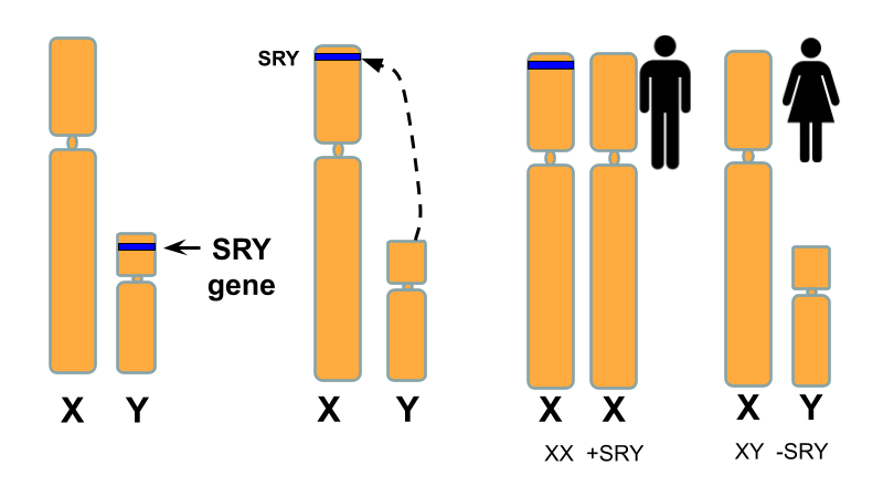 17. How is it possible that the SRY gene could end up on the X chromosome or be missing from the Y chromosome?