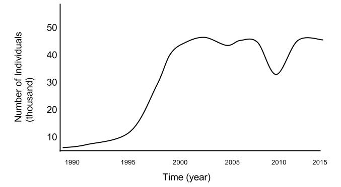 16. Based on the graph, what is the carrying capacity for crabs in the area being studied. Propose a reason that the population dropped in 2010.