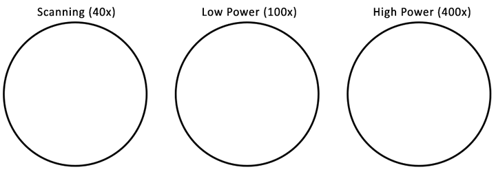 5. Use the SCANNING objective first and use the coarse adjustment knob to bring the slide into focus. Cells will appear very tiny at this magnification.