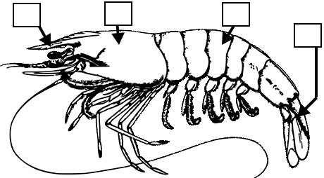 9. The cephalothorax is covered by a thick armor called a carapace. Extending from the carapace is a pointy structure called the rostrum