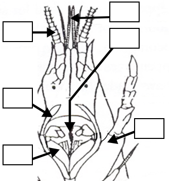 6. Locate the two large antennae and the smaller antennules that branch from the base. The antennae are sense organs (touch, taste, equilibrium)