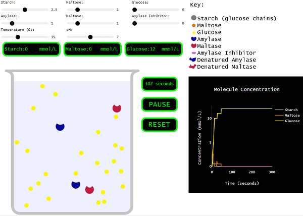 Use this worksheet with biologysimulations to explore the effects of concentration, temperature and pH on enzyme activity.
