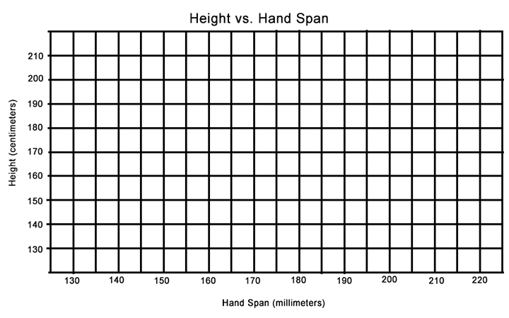 Data is often represented in graphs, though there are different types of graphs which can help you understand relationships between variables or compare averages. In this exercise, you will use a graph to represent hand spans of your classmates and determine how the hand span is related to height.