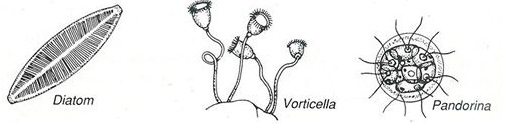 Ciliates: Ciliates are a group of protozoans characterized by the presence of cilia, which they use for locomotion and feeding. Examples include various species of Vorticella and Stentor.