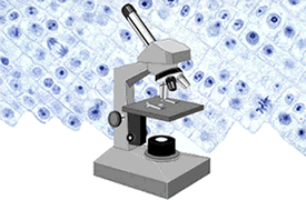The prepared slides are placed under a microscope, where the cells undergoing mitosis can be observed at different stages. Mitosis consists of several stages: prophase, metaphase, anaphase, and telophase, followed by cytokinesis. The slide is in a "fixed" state, as if the cells were frozen in time.