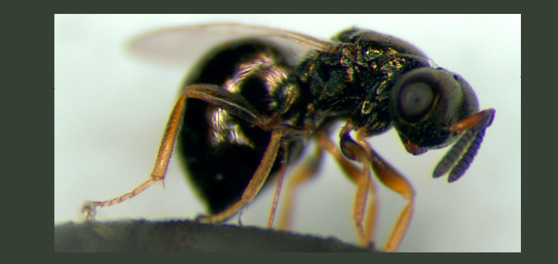 They will then conveniently climb into the tube. Add a host (or two) and plug the tube with cotton and you are done. Large numbers of individuals can be efficiently handled in this way. Females can easily be distinguished from males in the adult stage, as they are larger and their wings extend beyond thier abdomen. Females also have a darker colored body and legs, and a thicker antennae. Males have a greenish color and light colored thin antennae.