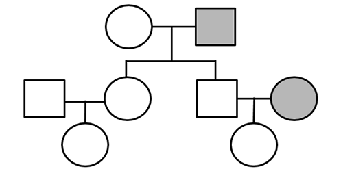 2. Examine the pedigree chart shown below. For each individual, write the genotype in the square or circle. Use the following notation: