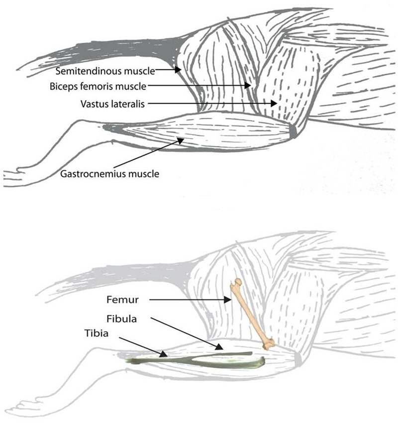 The hind limb of a rat, like that of other mammals, consists of a complex arrangement of bones and muscles that work together to facilitate movement, provide support, and maintain balance.