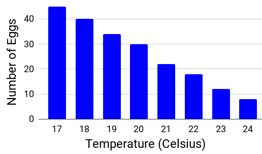 The graph shows the number of shrimp hatched at different temperatures.