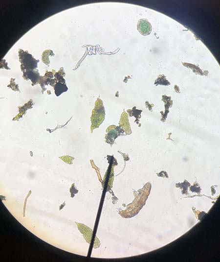 5. Be patient, tardigrades are easily overlooked! You may also find small worms called nematodes, rotifers, and other living things in your sample.